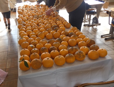 2月26日 5・6・7組 みかんの収穫 公開日 2025/02/26 更新日 2025/02/26 お知らせ 今年も校庭のミカンの木にたくさんの実がなり、5・6・7組のみなさんが収穫してくれました。5組の教室に並べられたみかの数は、300個です。