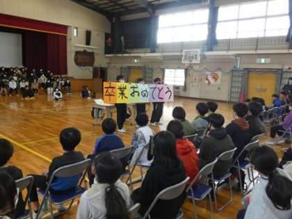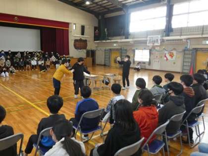 ありがとう集会 5 公開日 2025/02/27 更新日 2025/02/27 お知らせ 最後の出し物は、ありがとう集会の準備や進行、まくまなどを務めてくれた5年生でした。コントはとても面白かったし、歌のプレゼントは気持ちが伝わってきました。