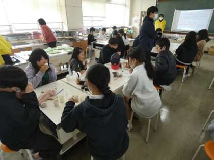 5年生 総合の授業 公開日 2025/03/06 更新日 2025/03/06 お知らせ 桝塚(野田)味噌の方がみえて、味噌についていろいろなことを教えてくれました。味噌の種類については、実際に試飲をさせてもらい、違いについて理解を深めました。