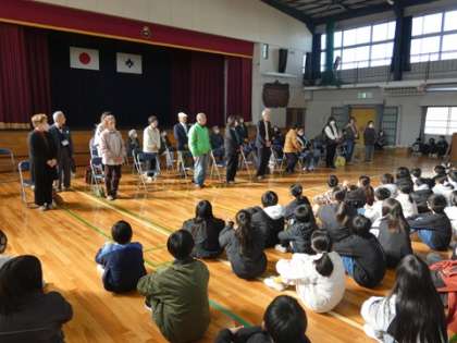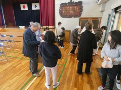 3月7日 感謝する会 公開日 2025/03/07 更新日 2025/03/07 お知らせ いつもお世話になっているボランティアさんに感謝の気持ちを伝える感謝の会を行いました。登下校見守りボランティア、読み聞かせボランティア、図書館ボランティア、居場所スタッフ、ミシンボランティア、地域学校共働本部長、地域コーディネーターさんたちなどたくさんのボランティアさんたちが参加してくれました。 子どもたちからは、感謝状と校庭で収穫したみかんが贈られました。