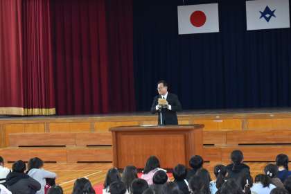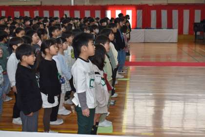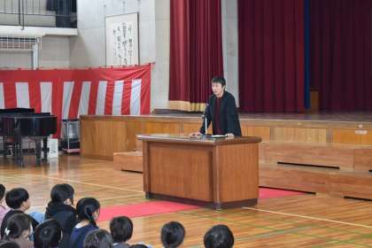修了式 3 公開日 2025/03/24 更新日 2025/03/24 お知らせ 校長からは、「あいさつの取り組みの振り返り」と「結果よりも過程を大切にする取り組みの振り返り」、「憧れを持とう」というお話がありました。 生徒指導のお話の後、元気に校歌を歌いました。