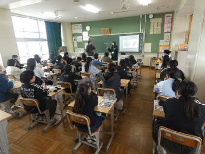 ALTの先生と担任の英会話をお手本に楽しそうに授業をしていました。