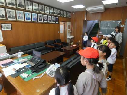 1年生 2年生 学校探検 公開日 2025/05/07 更新日 2025/05/07 お知らせ 畝部小学校の校舎の中を2年生が1年生をエスコートして、ポイントに貼られたクイズを解きながら探検しました。校長室に来た子どもたちは、初代校長から34代校長まで並んで掲示してある校長先生たちの34枚の写真を見て不思議そうにしていました。 2年生は、この日のために練習もしていたので、1年生は優しくエスコートすることができました。