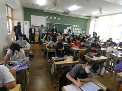 学校運営協議会が行われました。学校の教育目標、経営方針、本年度の重点目標、地域学校共働本部との連携や学校評価についてなどが話し合われました。その後で、子どもたちの授業の様子を参観していただきました。