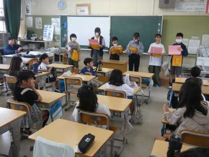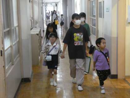 ファミリーはじまりの会 公開日 2025/06/03 更新日 2025/06/03 お知らせ 今日は、今年度初めてのファミリー班(縦割り班)活動でした。1年生の子を6年生が教室に呼びに行き、6年生がリードして、ファミリー活動を進めました。