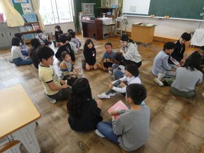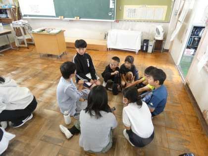 ファミリー班ごとに集まって自己紹介や自己紹介ゲームをしました。