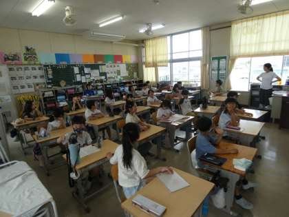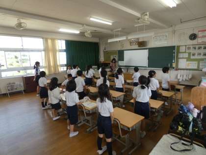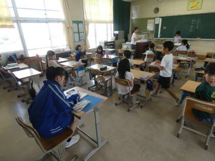 6月4日 上郷中学校職場体験学習 公開日 2025/06/04 更新日 2025/06/04 お知らせ 上郷中学校2年生の生徒が二人、畝部小学校の2年生と3年生に職場体験学習に来ています。クラスの子どもたちは、興味津々です。