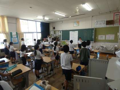 朝の会の教室から今月の歌の「カントリーロード」の元気な歌声が聞こえてきました。