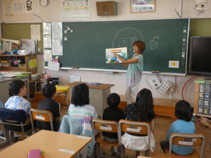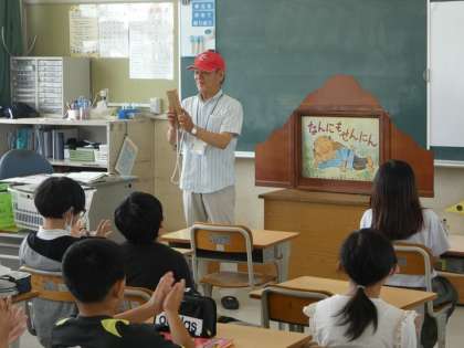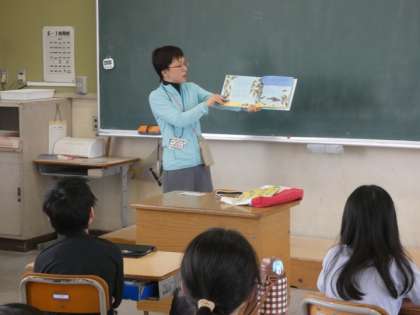 ボランティアさんによる朝の読み聞かせが行われました。子どもたちの乗り出すように聞いている姿が印象的でした。