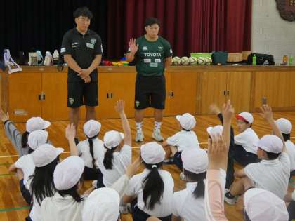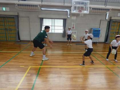 6月11日 4年生 ラグビー体験教室 1 公開日 2025/06/11 更新日 2025/06/11 お知らせ 豊田市を拠点とするラグビーチームのトヨタヴェルブリッツの選手が畝部小学校に来て、ラグビーを教えてくれました。最初、大きな体の選手にびっくりしていましたが、優しく指導してくれたので楽しい時間を過ごすことができました。