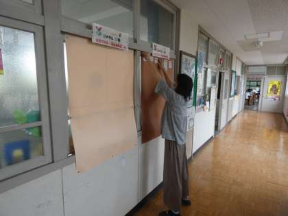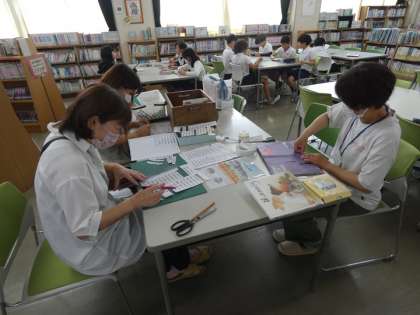 図書ボランティアさんたちが、図書館の環境を整えてくだっさたり、掲示物を作ってくれたりしていました。
