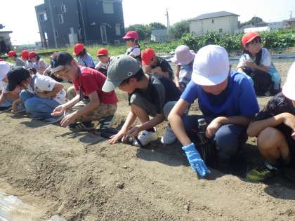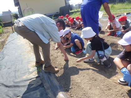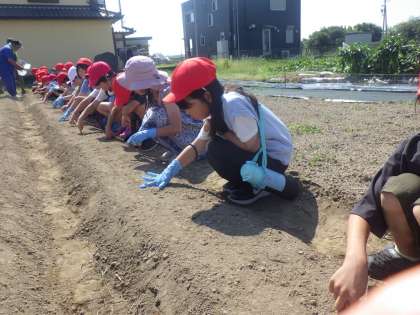 JAの方に教えていただきながら、大豆の種まきをしました。