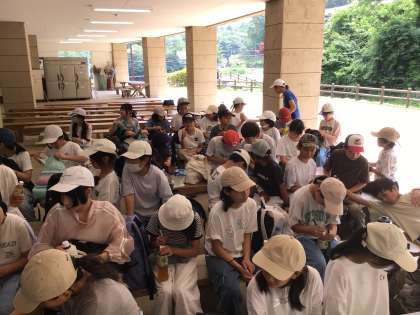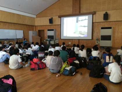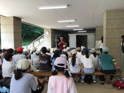 山の学習3 オリエンテーション 公開日 2025/07/08 更新日 2025/07/08 お知らせ 施設の使用上の留意点を聞きました。ここ豊田市青少年総合野外センターでは、豊田市の気温が38度でも34度くらいにしかならないという話を聞いて安心しました。オリエンテーションを終えて、次は川の横のさえずりホールでクラフトでネームプレートを作ります。