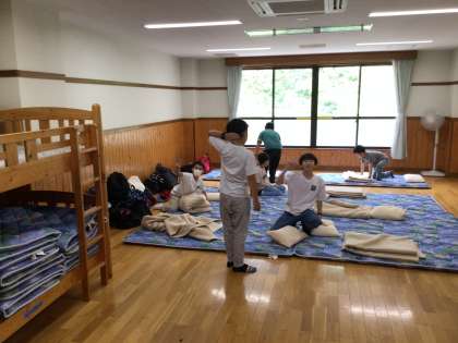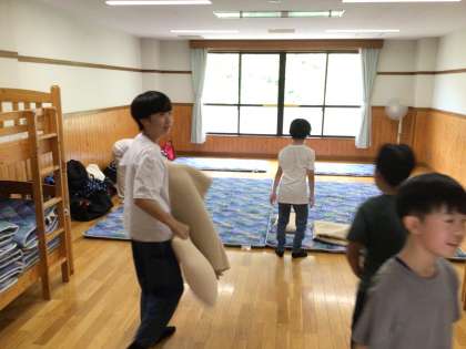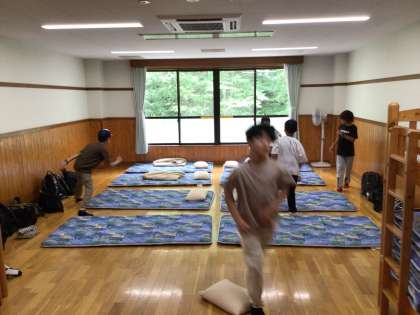 各自の部屋に移動して、炊事やファイヤー、就寝準備をしています。準備が終わったら、少し部屋で休憩して午後の活動に備えます。部屋は冷房がきいてとても快適です。