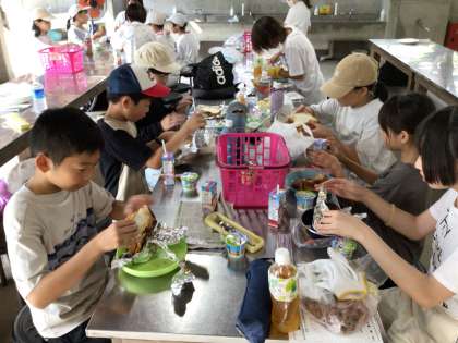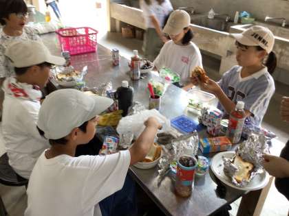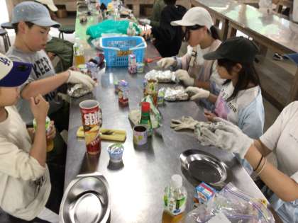 カーインピザが焼き上がりました。アルミ箔をはがして、ほくほくのピザをおいしく食べました。