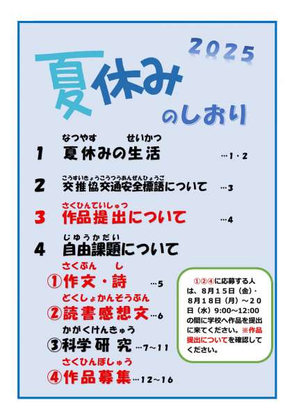 夏休みのしおりを掲載しました