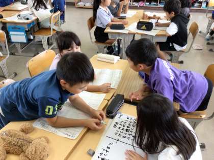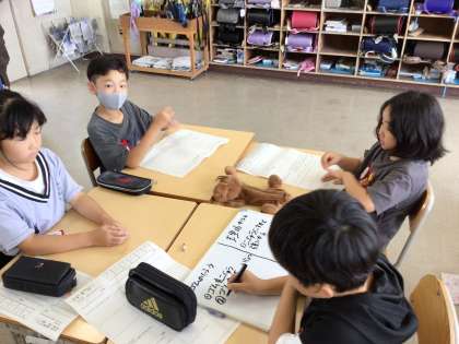 ゴムの力について班で話し合いをしていました。班員の意見を発表用ボードに上手にまとめらるようになってきました。