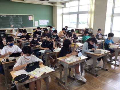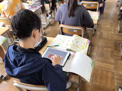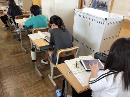 情報モラルについて考えました。授業の終わりに教科書の二次元コードから授業内容の復習をしています。