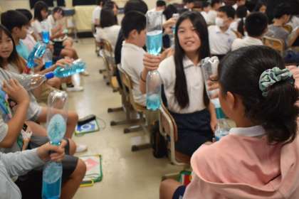 5年生が、9月5日(金)の3・4時間目に、中部地域づくり協会の方に講師にお越しいただき、防災教室を行いました。