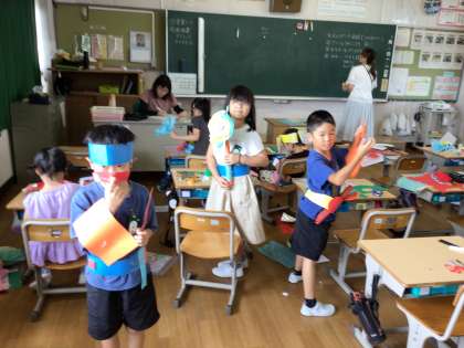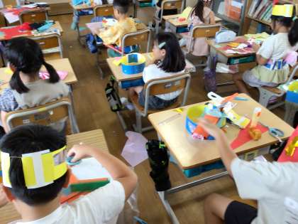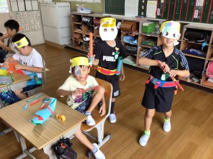 いろいろと工夫して仮面を作り変身しています。楽しそうです。