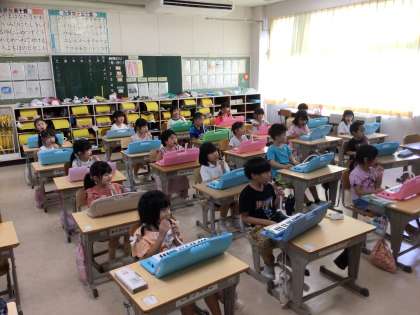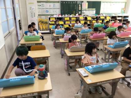 散歩を歩きながら歌ったり、鍵盤ハーモニカを演奏したりしました。とても楽しそうです。