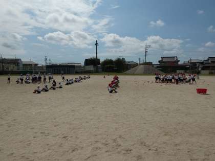 低学年は、運動会で行う玉入れの練習をしました。