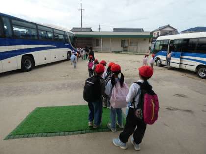 1年生は、生活科の「あきとあそぼう」の授業でバスを使って、自然観察の森に出かけました。