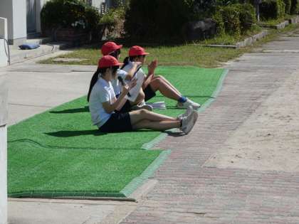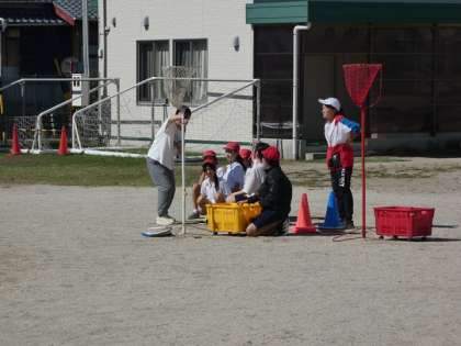 6年生にとって最後の運動会は、自分たちの競技や演技だけではなく、低学年や中学年の器具係などのサポートを行わなくてはいけません。写真は、低学年の練習に入って、進行や器具の移動をしている様子です。