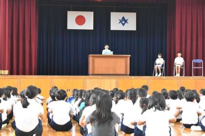 2年生、4年生の代表の子が「前期頑張ったことと後期頑張りたいこと」を、6年生の代表の子が「少年の主張大会」の内容を堂々とした態度で発表することができました。