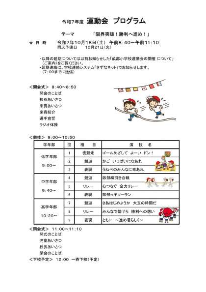予定通り運動会を開催します。よろしくお願いします。