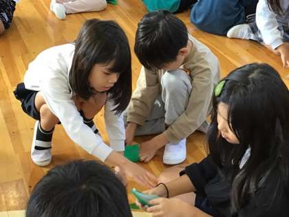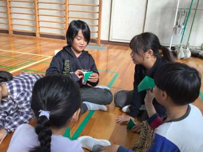 うねべの里プロジェクトは、福祉・赤十字委員会が牛乳パック回収で集めたお金でうねべのさとにキッチンペーパーや消毒用アルコールを送るものです。昨年度は、この時に日本の四季を感じられるちぎり絵を送りました。今年度は、その四季のちぎり絵を全校児童で折鶴を折って、それを貼って日本の四季を描こうというプロジェクトです。