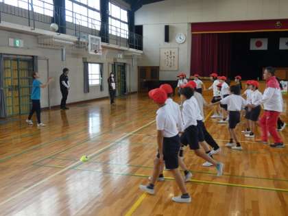 1時間目は、体育館で体を動かしながら、仲間と協力することの大切さを学びました。