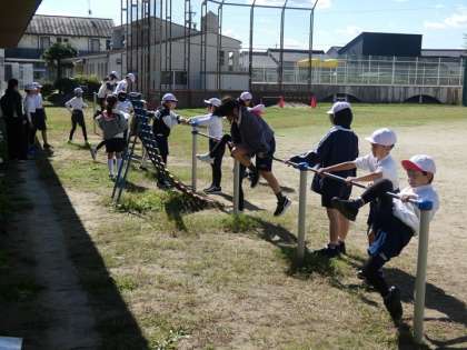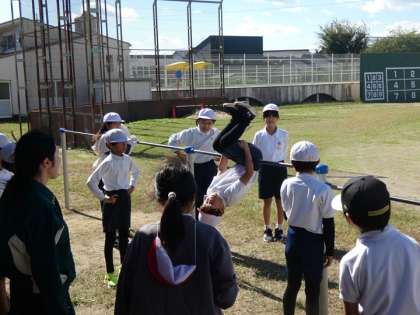 4年生 体育の授業 公開日 2025/10/28 更新日 2025/10/28 お知らせ 鉄棒の練習をしました。急に寒くなり、外での鉄棒練習は、少し寒そうでしたが、子どもたちは何度も、新しい技に挑戦していました。