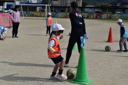 ドリブルなどの基礎基本を教えていただき、その後でゲームをしました。
