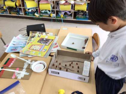 どんぐりを使っておもちゃを作りました。