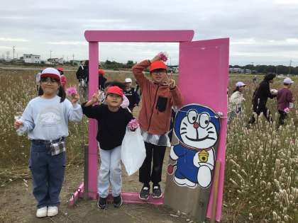八柱神社やコスモス畑に行きました。八柱神社やコスモス畑を守っている人の話を聞きました。コスモス畑では、コスモスの種をとらせていただきました。