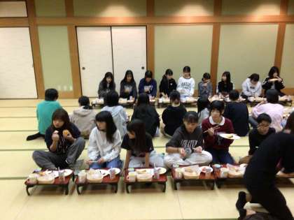 全員そろって朝食を食べました。みんな元気です。朝食の時に、今日誕生日のお友達をみんなで祝う温かいシーンもありました。この後、部屋点検、退所式、8時に出発という流れです。