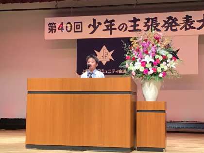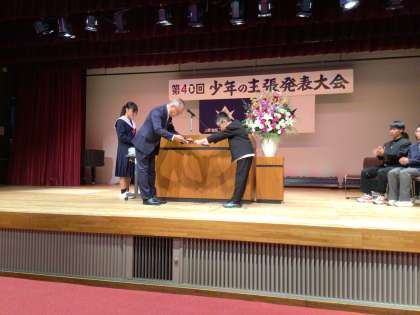 畝部小学校代表の発表者と紹介者か、上郷コミニュティセンターで堂々と発表しました。