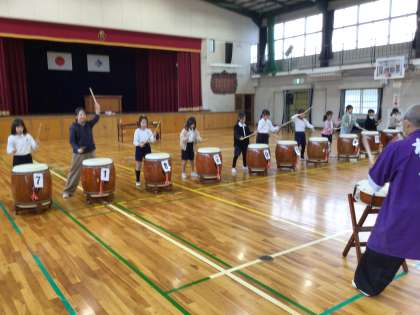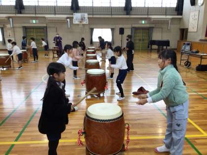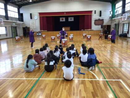 11月18日 3年生 和太鼓体験 公開日 2025/11/18 更新日 2025/11/18 お知らせ 早川流やぐら太鼓保存会のみなさんを講師に迎えて和太鼓を体験しました。太鼓の基本の打ち方を習った後で、100%勇気の曲にあわせて、みんなで太鼓を楽しく打ちました。