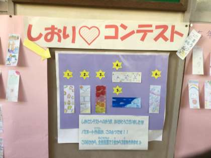 11月27日 図書館まつり 公開日 2025/11/28 更新日 2025/11/28 お知らせ 読書の秋です。図書委員会が行なっている図書館まつりも最終日です。たくさんの応援があった「しおりコンテスト」の投票も本日が締め切りです。どのしおりが選ばれるのでしょうか。
