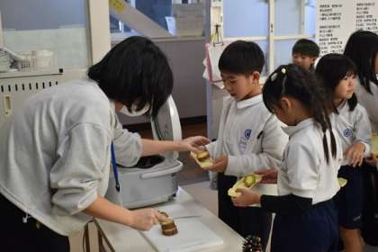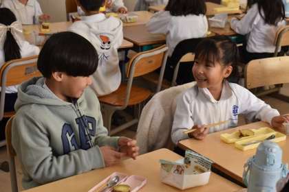 1年生 おいもパーティー 公開日 2025/11/28 更新日 2025/11/28 お知らせ お芋の植え方や育て方、収穫の仕方などを丁寧に教えてくれた校内整備員さんに感謝の気持ちを伝えた後、炊飯器で作ったおいしい焼き芋を食べました。