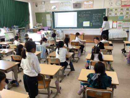 人権週間に向けて、人権についての勉強をしました。子どもたちからは、優しい発言がたくさん出ました。勉強したことをいかして人権標語を書いていきます。