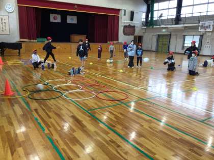ファミリー班活動 1組 公開日 2025/12/03 更新日 2025/12/03 お知らせ 体育委員が考えた「運動スタンプラリー」をファミリー班で回りました。6年生は、班のみんなが、楽しく体を動かせるように、班員に説明したり、声を掛けたりしました。