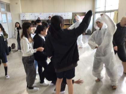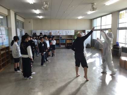 12月10日 5年生 舞踏体験 公開日 2025/12/10 更新日 2025/12/10 お知らせ 東京から、大駱駝艦の方に来ていただいて、舞踏を体験しました。価値観の多様性を知り、自由な発想力、表現力、想像力を喚起するきっかけとなるとよいですね。