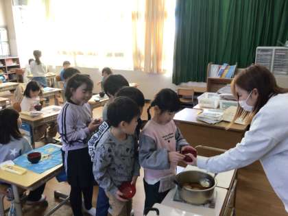 2年生 大根パーティー 公開日 2026/01/09 更新日 2026/01/09 お知らせ 自分たちで、収穫した大根でおでんを作り、おいしく食べました。大根の作り方を教えてくれた講師の方にも感謝の気持ちを伝えました。