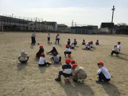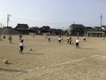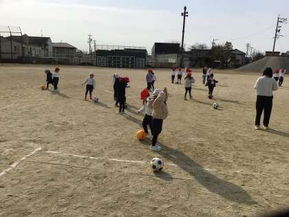 1年生の体育の授業では、足でボールを扱う練習をしました。