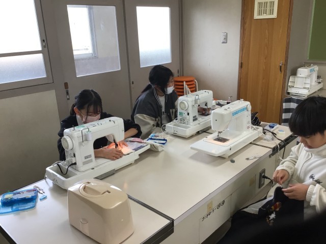 ミシンボランティアさんにも協力していただいて、エプロンのミシン縫いを行いました。みんな真剣です。