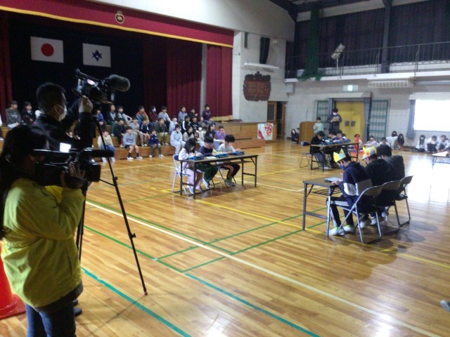 今日は、ひまわりネットワークによる「ぼくらの学び舎」の撮影が行われました。普段通りの学校生活の様子とありがとう集会の様子を撮影しました。撮影スタッフの人から、元気なあいさつをしてもらったことや楽しい学校生活の様子が撮れたという話をしていただきました。放送予定は、後日お知らせします。