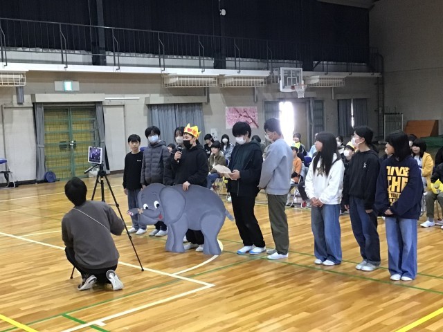 1年生から5年生までの出し物に6年生はとても楽しめたようです。最後に、6年生から5年生に明るく「あとは、たのんだゾウ。」というメッセージが送られました。