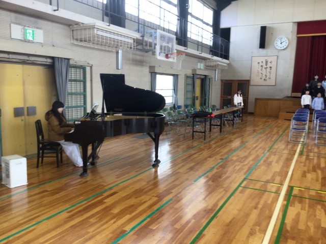 卒業式まであと8日です。体育館で外部の指導者の方に教えてもらって旅立ちの日にの合唱を練習しました。